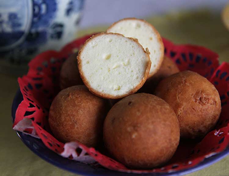 Petits pains au fromage à la farine de manioc garnie de pâte de goyave et arequipe.